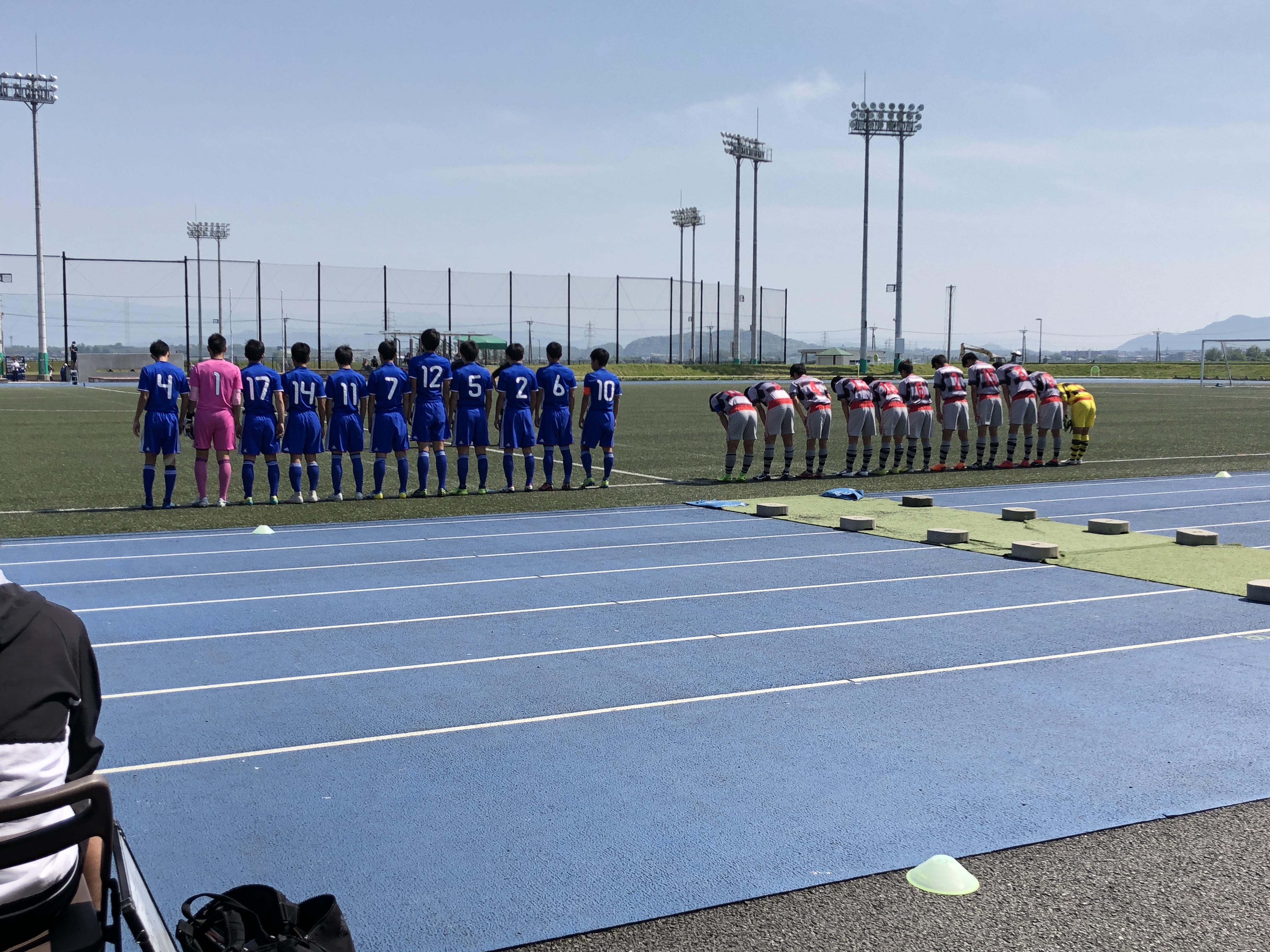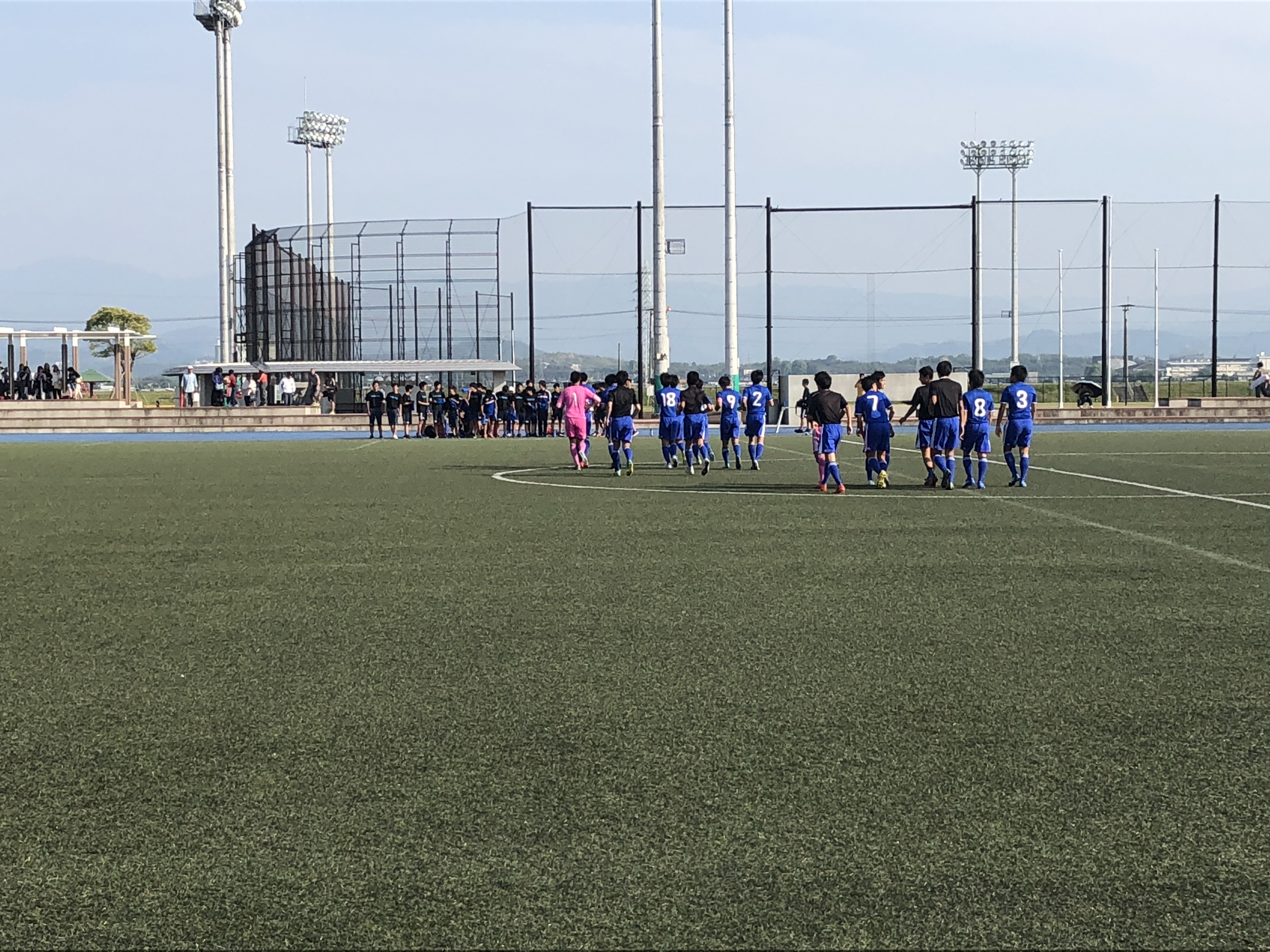 後半3分、タイセイのロングスローからナオがそらしてチャンスでしたが決めきれません。後半12分にタイセイのCKがそのままゴールし追加点!後半はリョウのヘディングが光ってますね。素晴らしい空中戦の勝率です。後半20分、たいせいのロングスローにナオが綺麗に反らし走り込んだバスが合わせました。これで3-0後半29分に右サイドに出たボールにこうすけが素晴らしいトラップからのクロス。しかしここはGKがナイスセーブ。後半32分、左サイドでケンシン、ヒビキ、ソウマで崩して抜け出したケンシンがクロス!バズのクロスはGKがキャッチしますがいい形を作ります。後半42分、前線でのこぼれ球を拾ったユウマがシュートまでいきますが、ここはGK正面。後半44分にカウンターからピンチを招きますが、ここはタクトがスライディングで阻止。