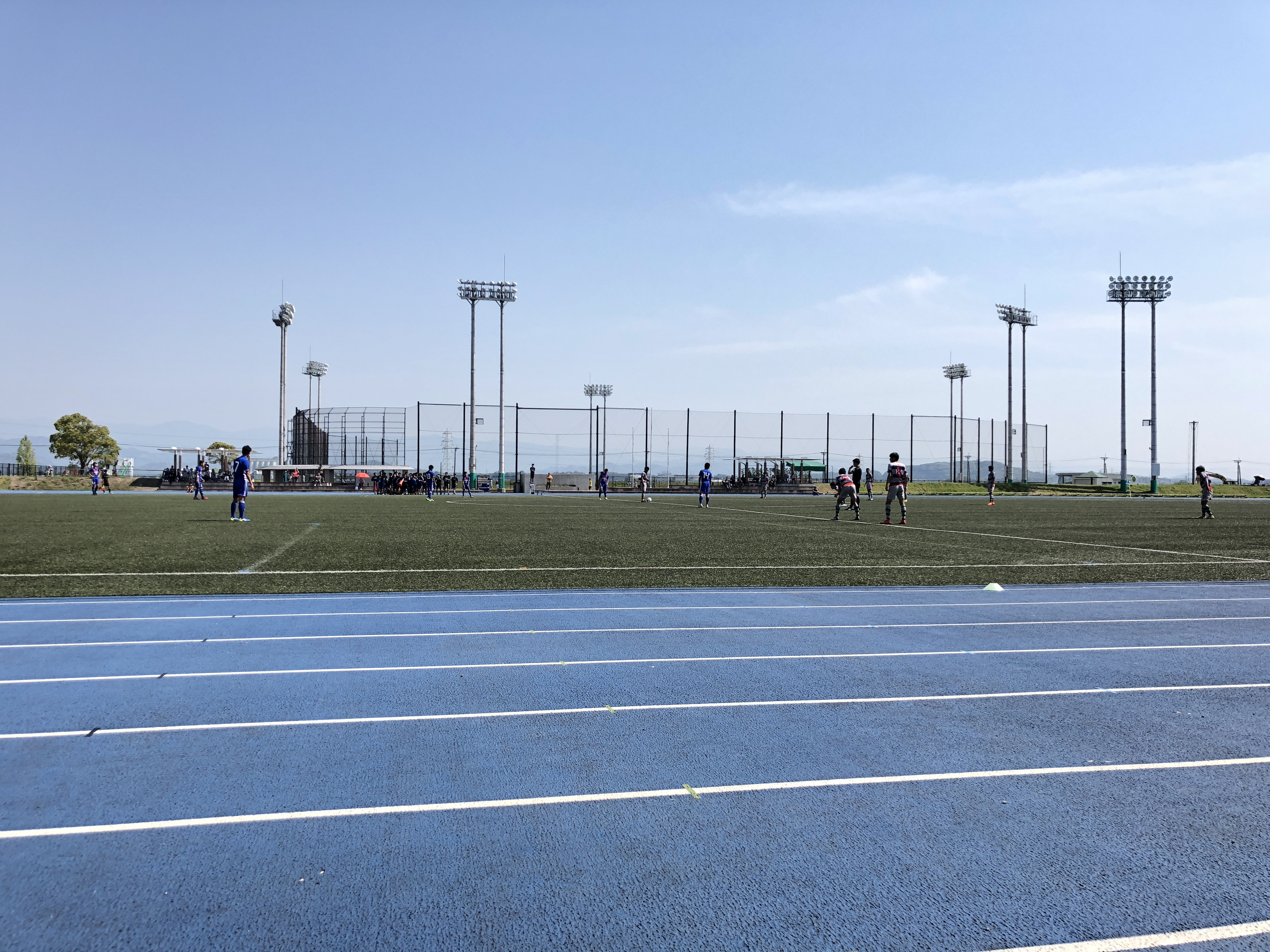 ・前半立ち上がりは鎮西ペース。9番、13番が果敢に裏を狙いチャンスを作り出します。前半13分上がっていったCBこうせいのクロスにクマが胸トラップから左足一閃!今シーズン初の先制点をあげます。前半14分には右サイドでねばったバスのパスに抜け出してクマがシュートまでいきますがここは鎮西DFも意地の守りでピンチを防ぎます。前半22分、右SBのこうすけが縦に長く抜け出しクロスをあげクマが合わせますが、ここは枠の外。前半31分にフミヒロが中にえぐり、サイドに流れたバスへパス。クロスはDFに塞がれますが良い形を作ります。前半終盤は攻守に渡りヒビキの球際での強さが際立ってました。前半43分にはたくとのロングフィードに抜け出したバスがシュートまでいきますが、ここは相手DFのナイスディフェンス。