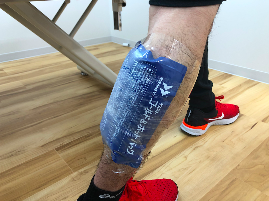 そして圧迫&アイシングの状態で患部のストレッチをやると、復帰までの期間が短くなりますよ!