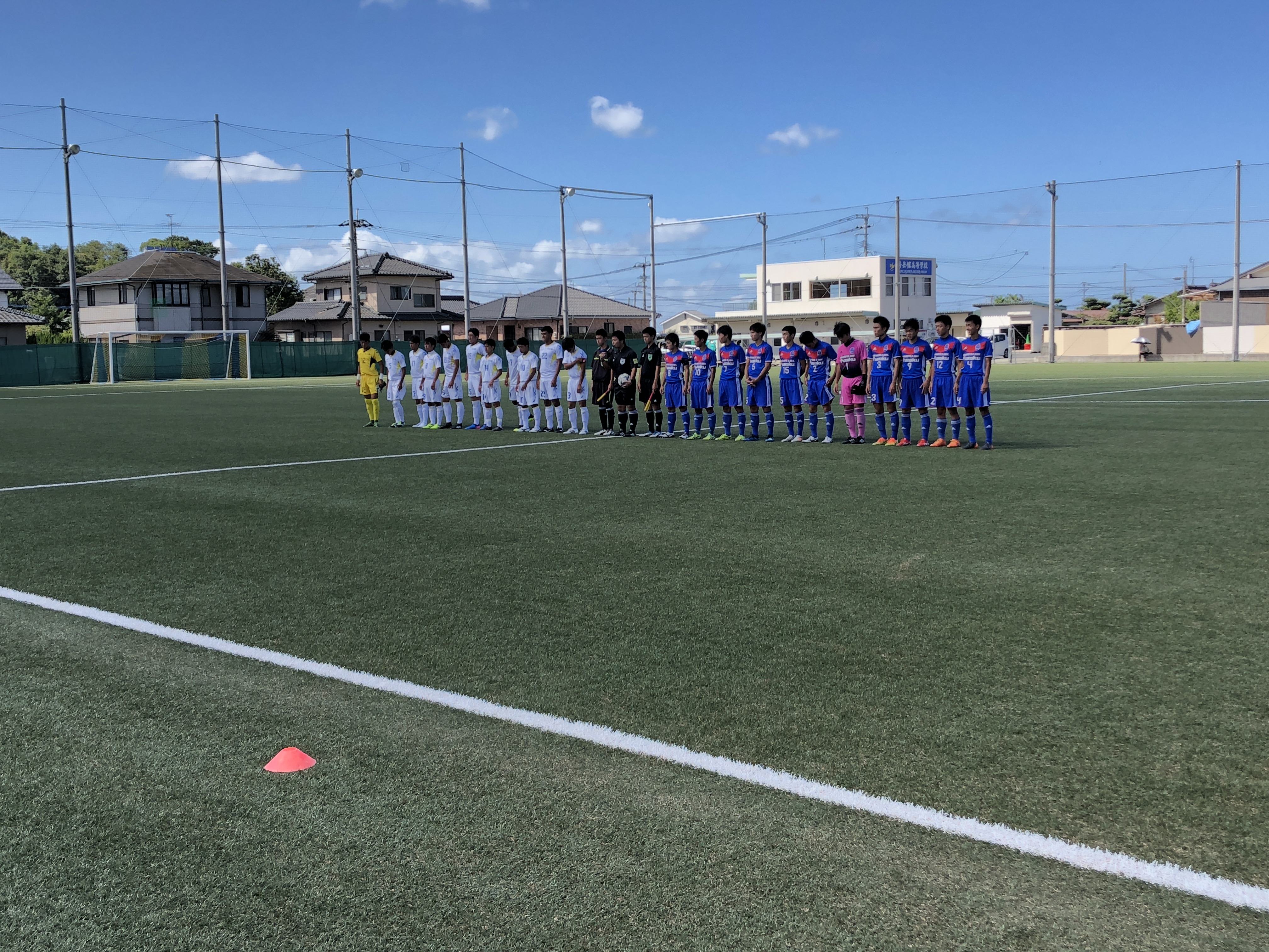 ・前半立ち上がりから学付はサイドを崩され決定機を作られますが、ここはトシヤがセーブ。前半3分に右サイドからタイセイのFKでチャンスを作りますが。ここは合いません。ここからは相手プレスも強くなく終始学付がボール保持が多い展開。前半12分にCKのピンチを迎えますが、なんとかクリア。しばらくお互いに中盤で潰し合い膠着状態がつづいてましたが、学付は前半ロスタイムに相手CKのカウンターからチャンスを作ります。しかしここはゴールまで結びつきません。