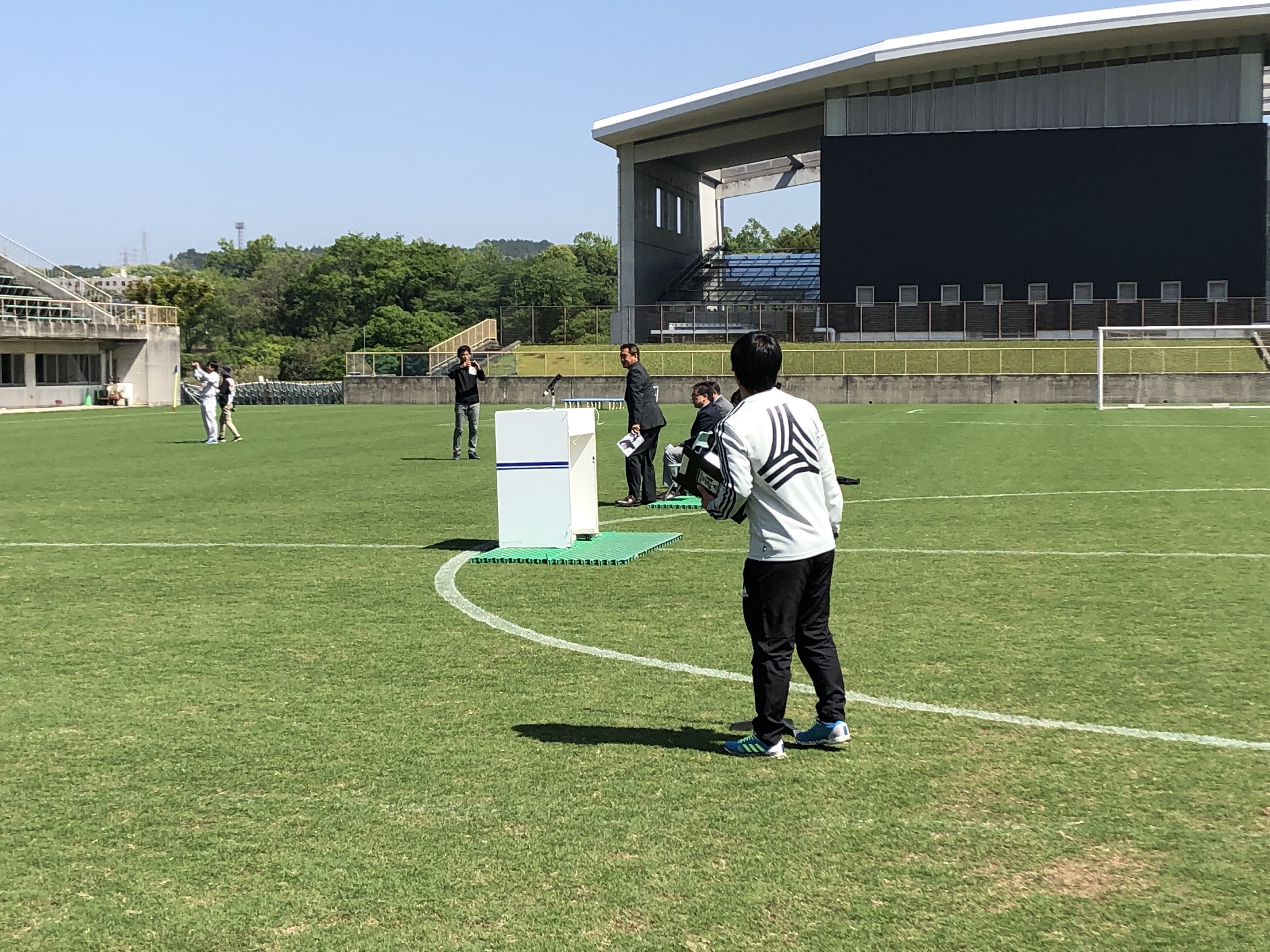 チーム事情ですぐ隣の会場で行われる鹿児島城西vs長崎総附の開幕戦に、審判として出陣する事となったのです。。。